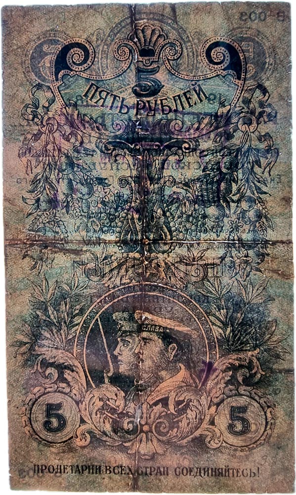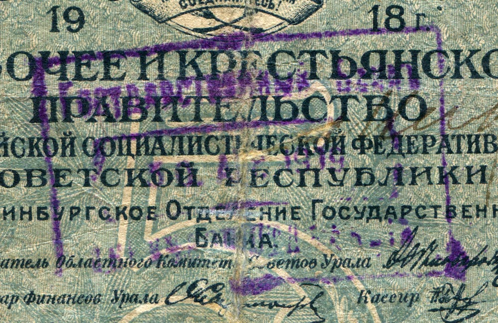 Екатеринбургское Отделение Государственного Банка 5 рублей 1918 В-003 (Штамп Пермского ОГБ ?)