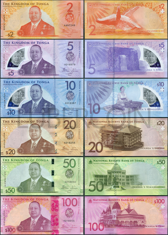 Тонга набор банкнот 2, 5, 10, 20, 50, 100 паанга ND (2023) (6 банкнот) UNC