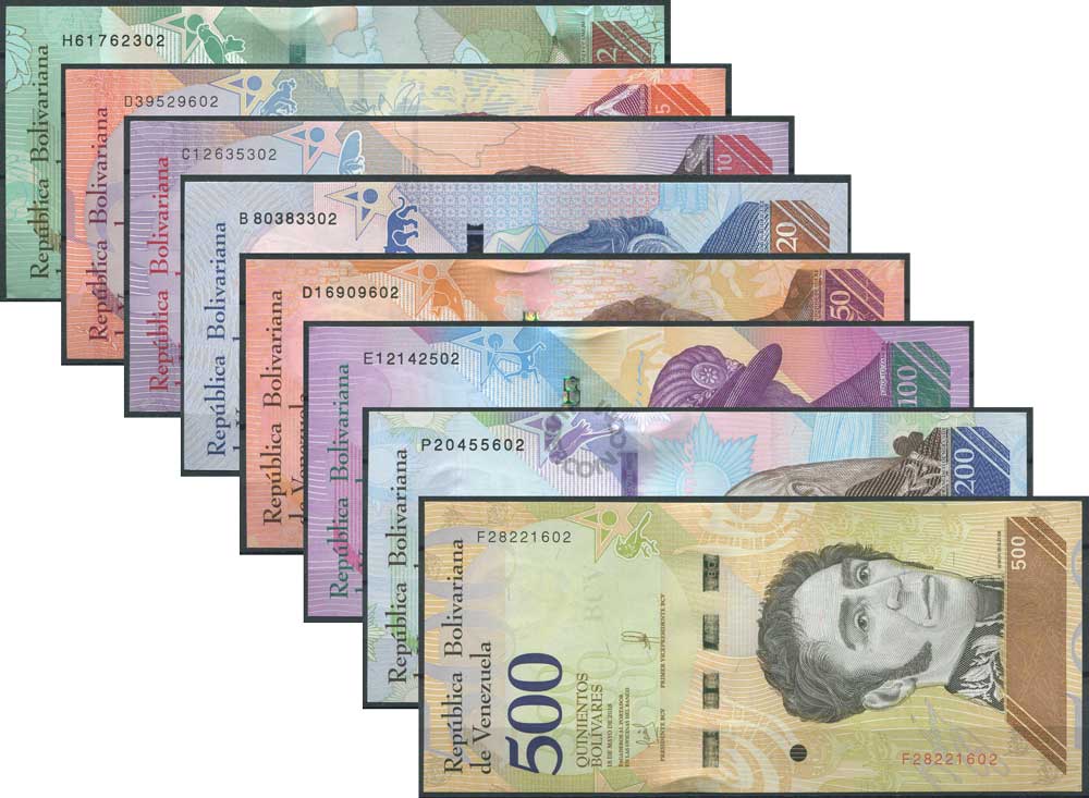 Номиналы: 2, 5, 10, 20, 50, 100, 200 и 500 боливар