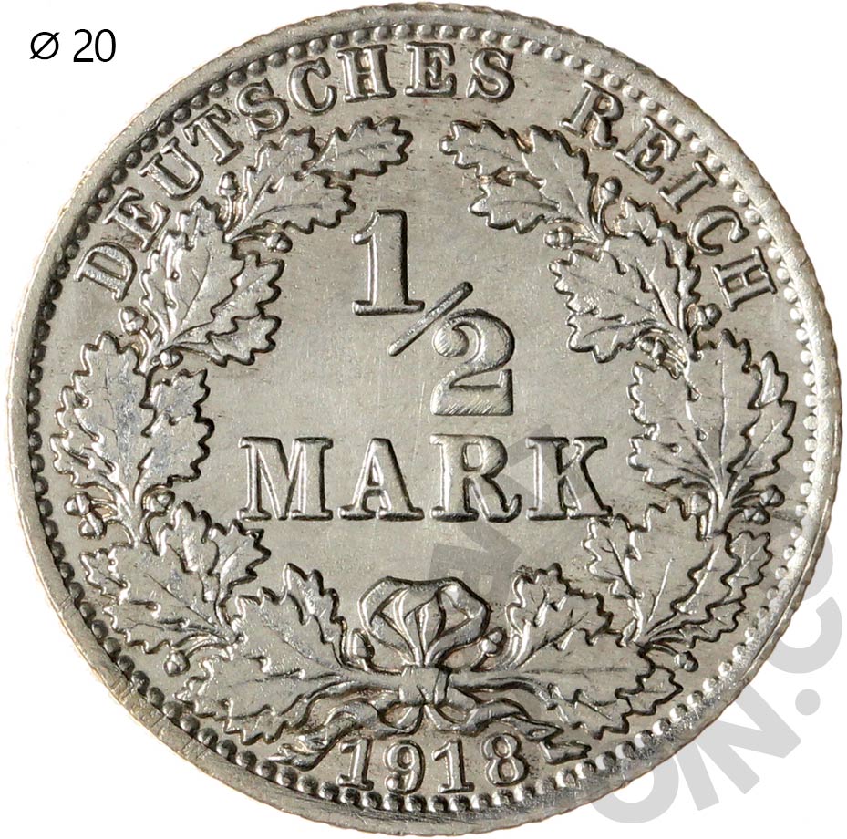 Германия (Империя) 1/2 марки 1918 F (00019677)