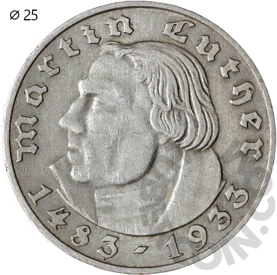 Германия (Третий Рейх) 2 рейхсмарки 1933 Мартин Лютер. 450 лет со дня рождения A (00044502)