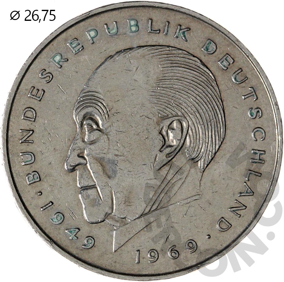 Германия (ФРГ) 2 марки 1987 Конрад Аденауэр D (00047114)