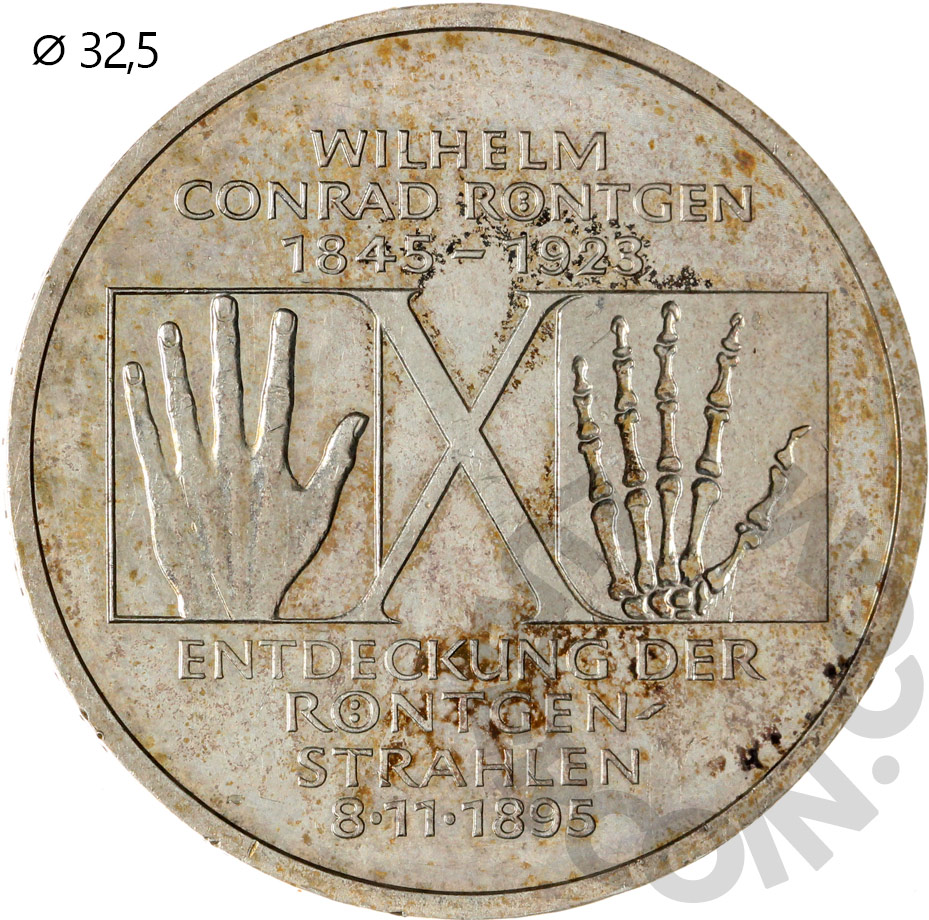 Германия (ФРГ) 10 марок 1995 Вильгельм Рентген. 150 лет со дня рождения D (00047426)