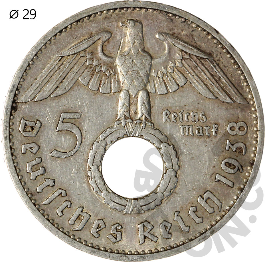 Германия (Третий Рейх) 5 рейхсмарок 1938 G (00046380)
