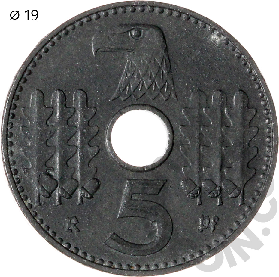 Германия (Третий Рейх) 5 рейхспфеннигов 1940 A Выпуск для оккупированных территорий (00046098)