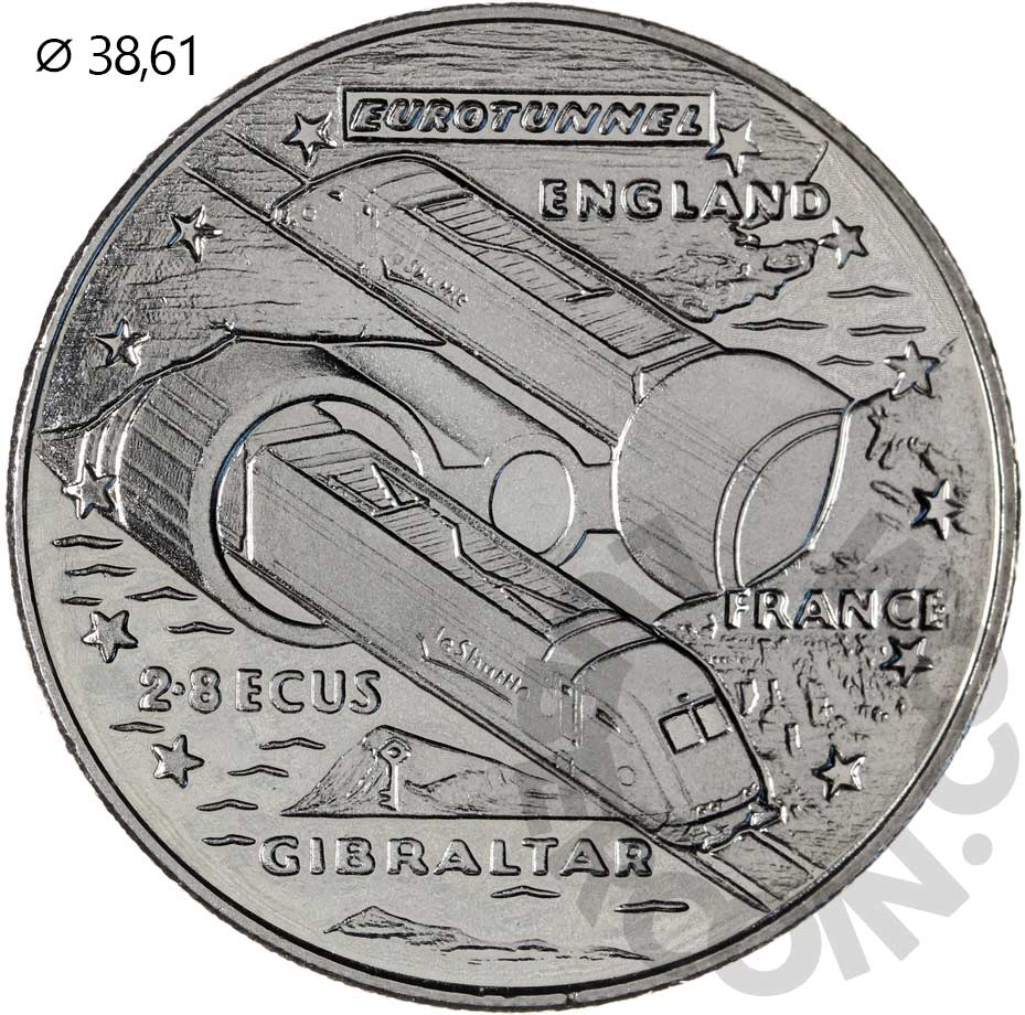 Гибралтар 2,8 экю 1993 Евротоннель (Медальное соотношение аверс-реверс) UNC