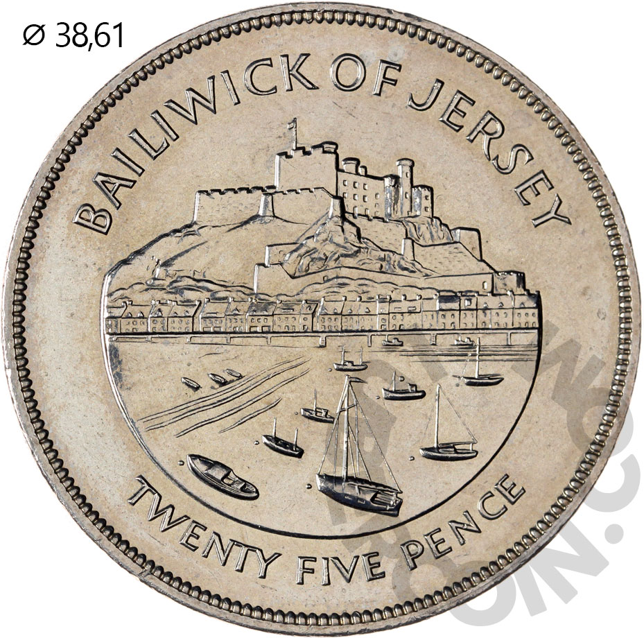 Джерси 25 пенсов 1977 Елизавета II. 25 лет правления UNC (Патина)