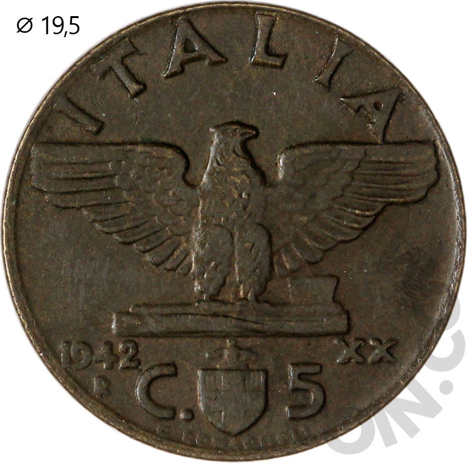 Италия 20 чентезимо 1940 Гурт рубчатый. Магнитная (#75b)