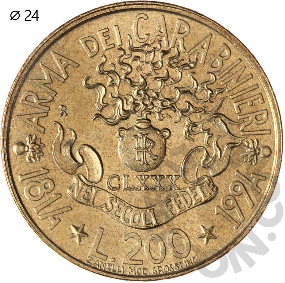 Италия 200 лир 1994 Карабинеры. 180 лет со дня основания
