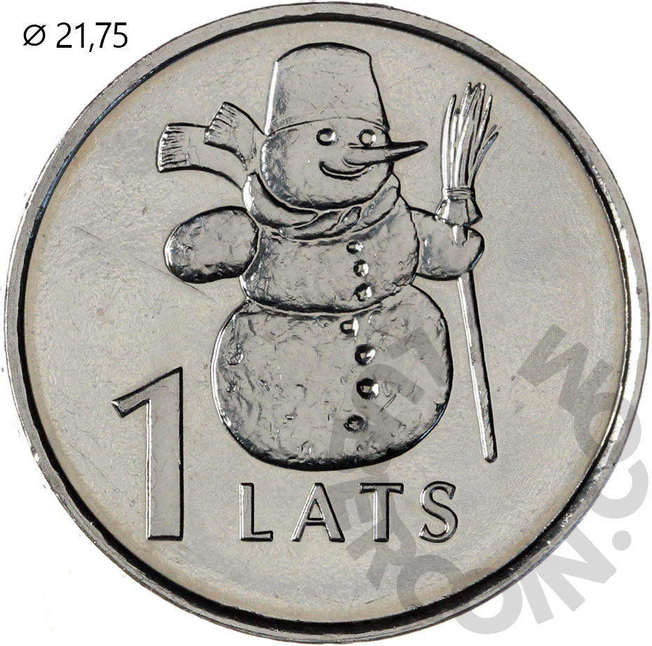 Латвия 1 лат 2007 Снеговик UNC