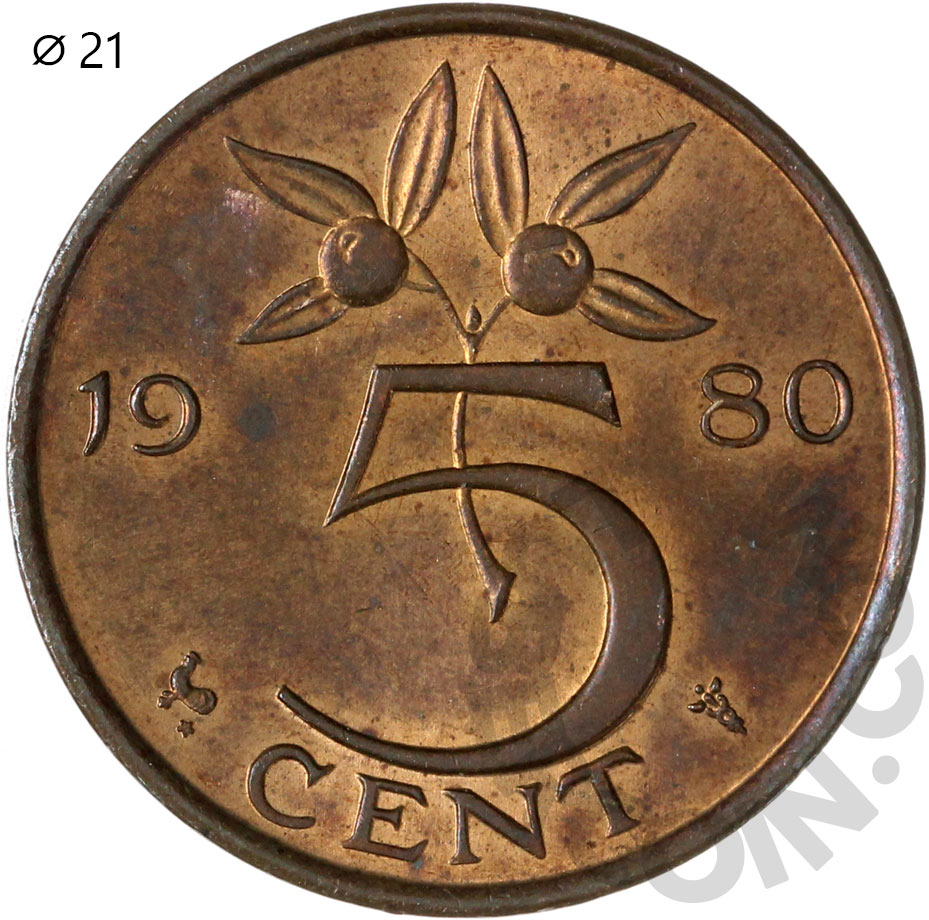 Нидерланды набор монет 1, 5, 10, 25 центов, 1, 2,5 гульдена 1980 (6 монет) UNC