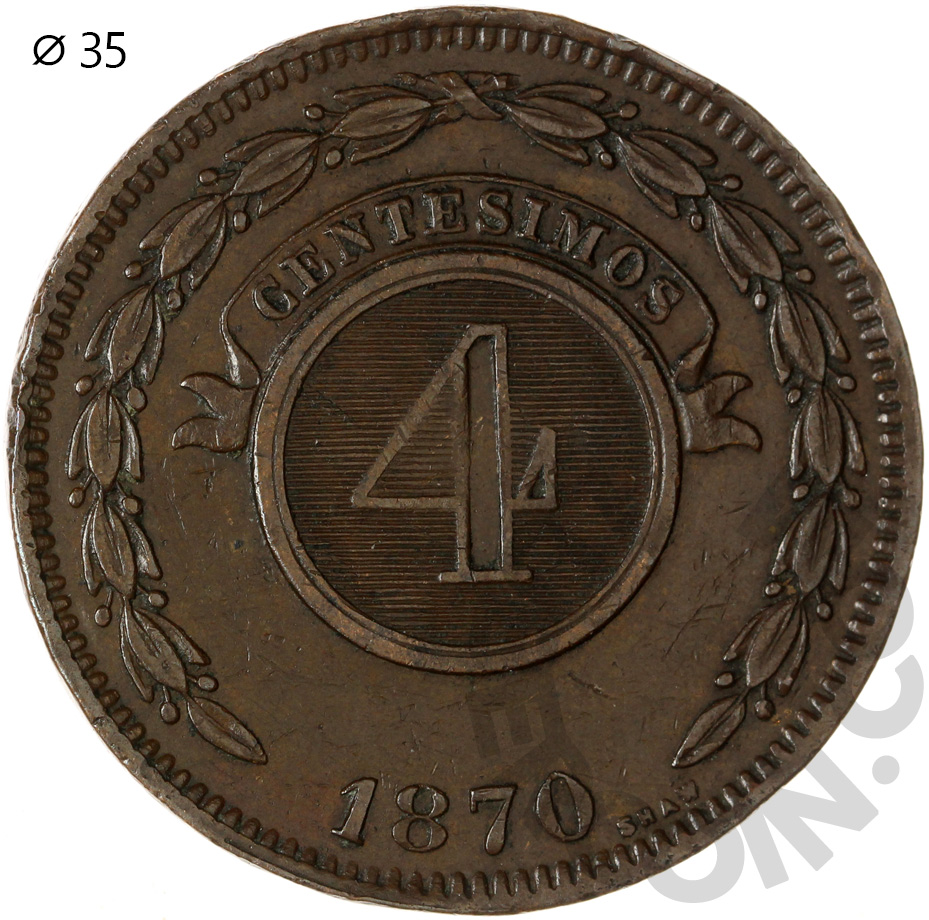 Парагвай 4 сентесимо 1870 «SHAW» (00047928)