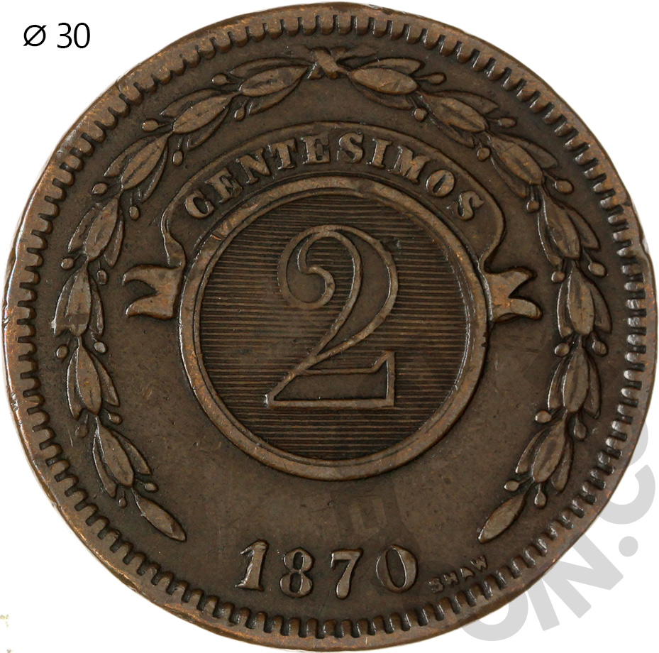 Парагвай 2 сентесимо 1870 «SHAW» (00047929)