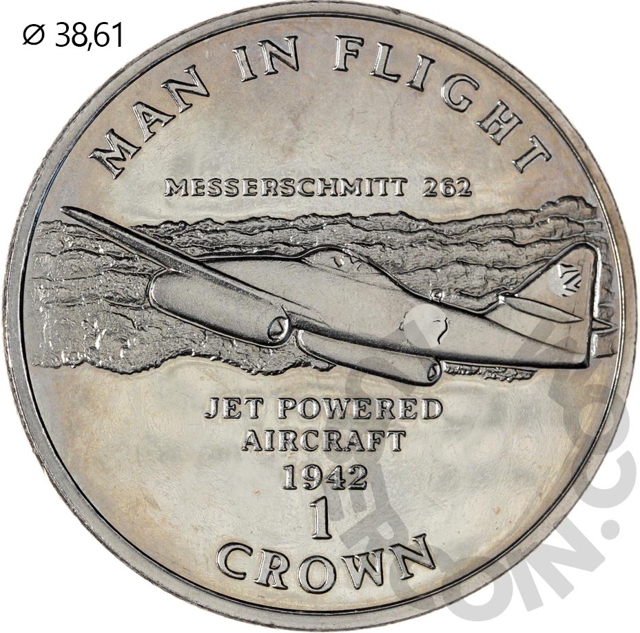 Остров Мэн 1 крона 1995 Человек в полёте. Мессершмидт 262 UNC (Патина)
