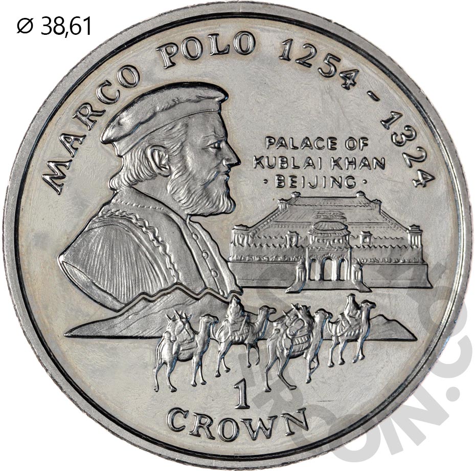 Остров Мэн 1 крона 1998 Мореплаватели — Марко Поло UNC (Патина)