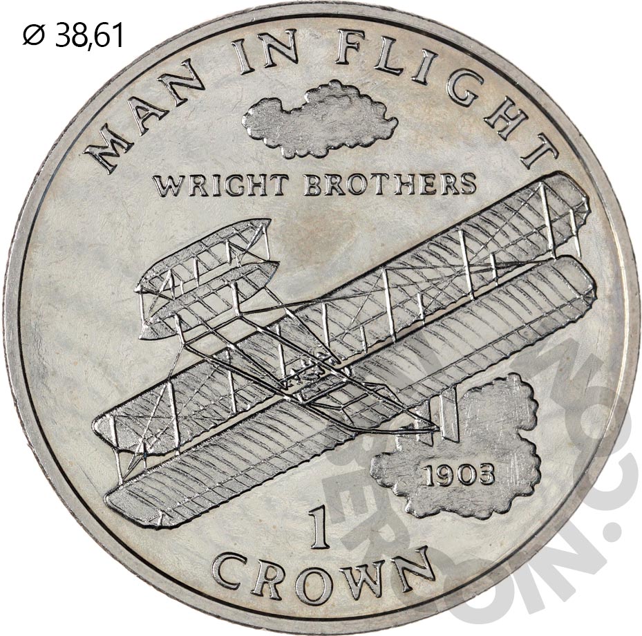 Остров Мэн 1 крона 1995 Человек в полёте. Братья Райт UNC (Патина)