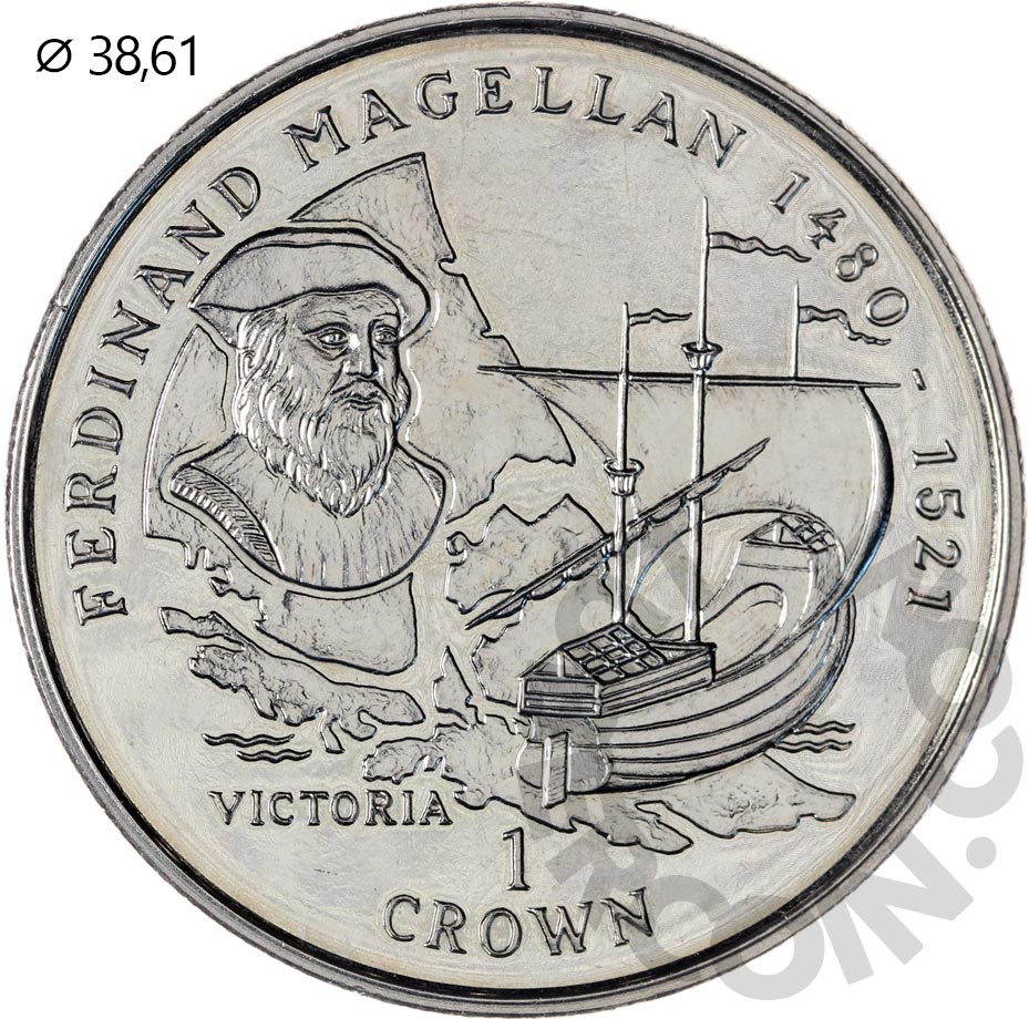 Остров Мэн 1 крона 1996 Мореплаватели — Фернан Магеллан UNC (Патина)