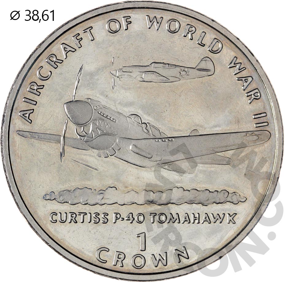 Остров Мэн 1 крона 1995 Самолёты Второй Мировой Войны. P-40 Томагавк UNC (Патина)