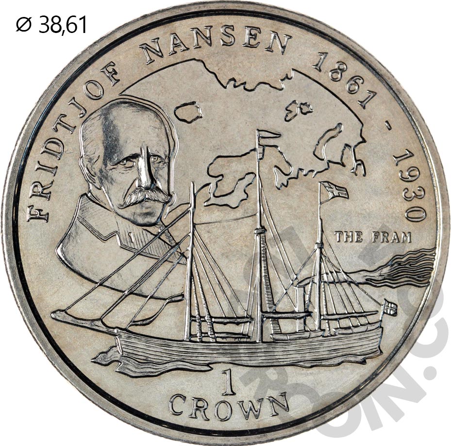 Остров Мэн 1 крона 1997 Мореплаватели — Фритьоф Нансен UNC (Патина)