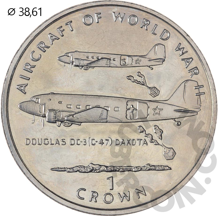 Остров Мэн 1 крона 1995 Самолёты Второй Мировой Войны. Дакота UNC (Патина)