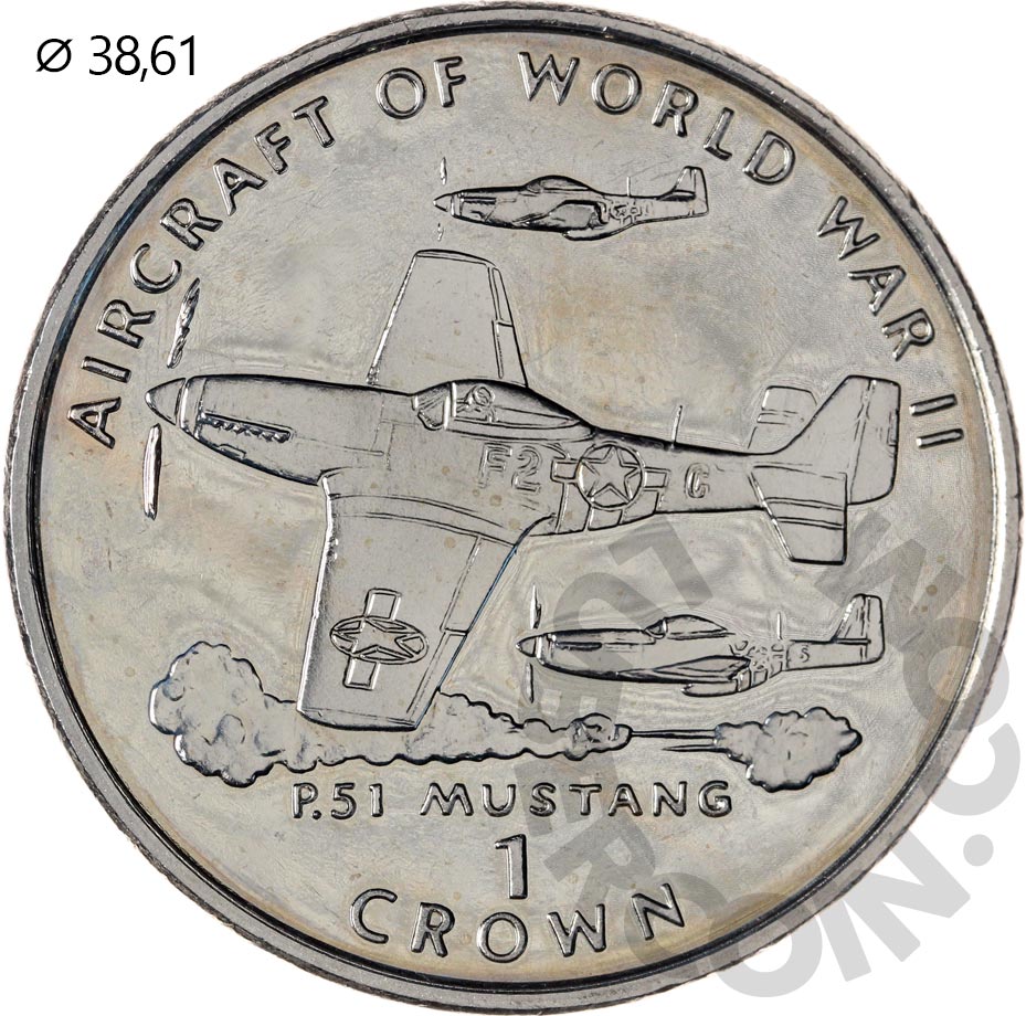 Остров Мэн 1 крона 1995 Самолёты Второй Мировой Войны. P-51 «Мустанг» UNC (Патина)