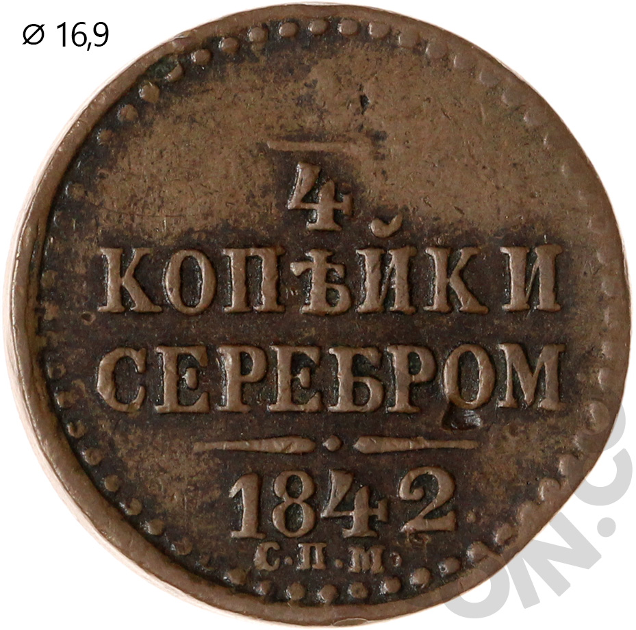 Российская Империя 1/4 копейки серебром 1842 С.П.М. (00047039)