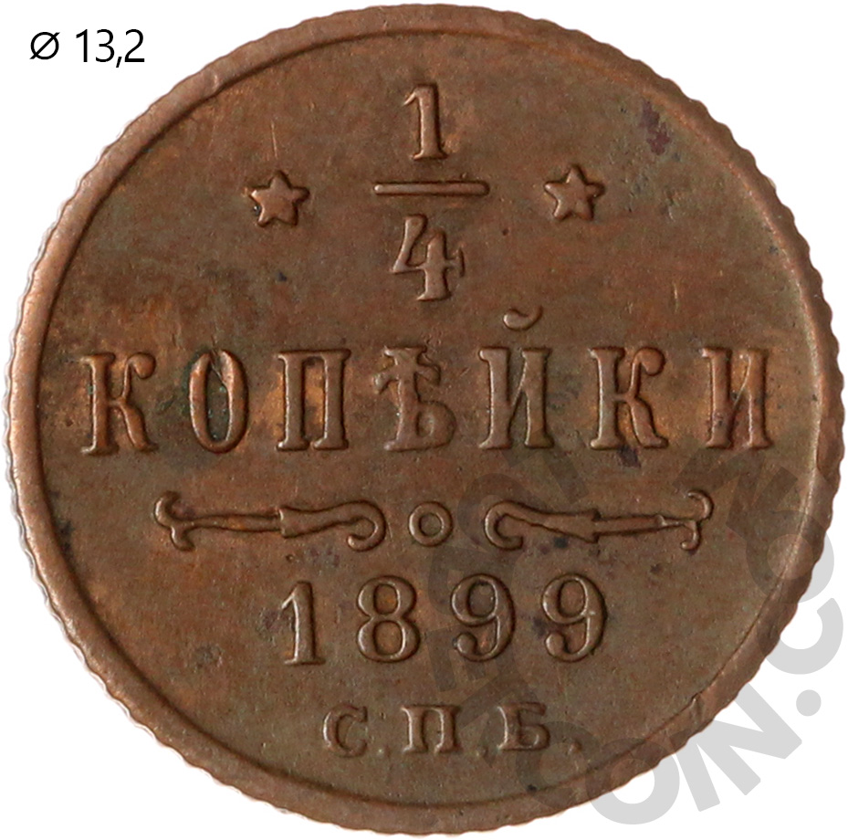 Российская Империя 1/4 копейки 1899 С.П.Б. (00047034)