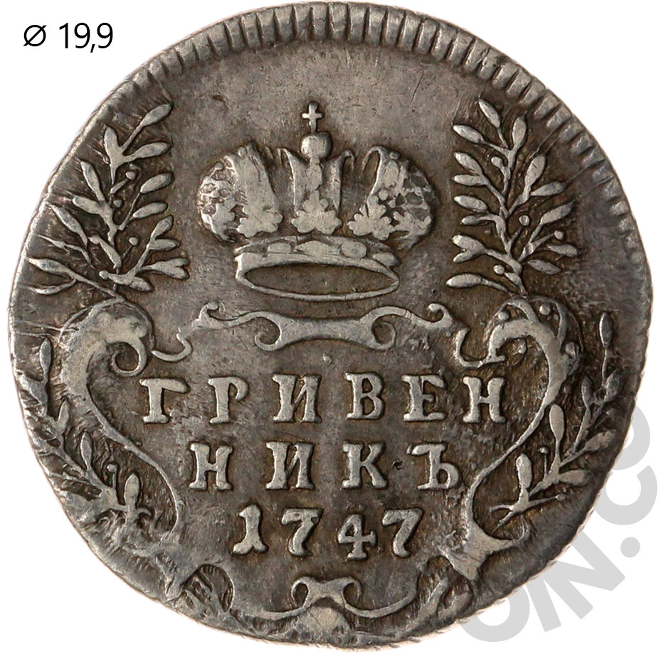 Российская Империя 10 копеек (гривенник) 1747 (2,44гр.) (00046955)