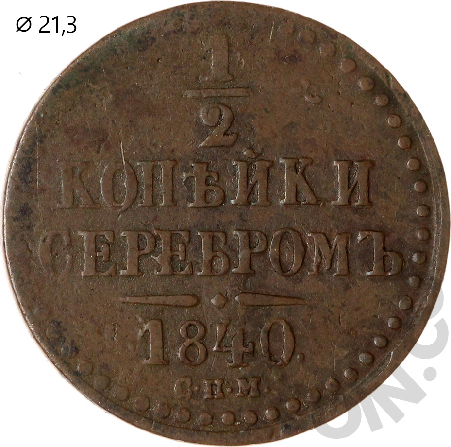 Российская Империя 1/2 копейки серебром 1840 СПМ (00047031)