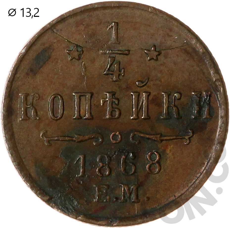 Российская Империя 1/4 копейки 1868 Е.М. (00047036)