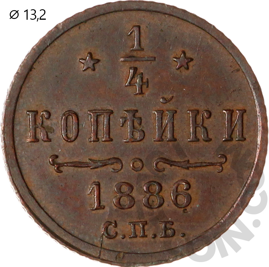 Российская Империя 1/4 копейки 1886 С.П.Б. (00047035)