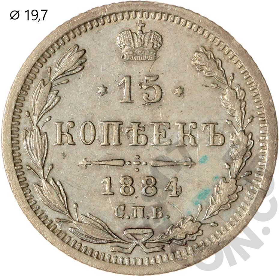 Российская Империя 15 копеек 1884 С.П.Б. АГ (00046947)