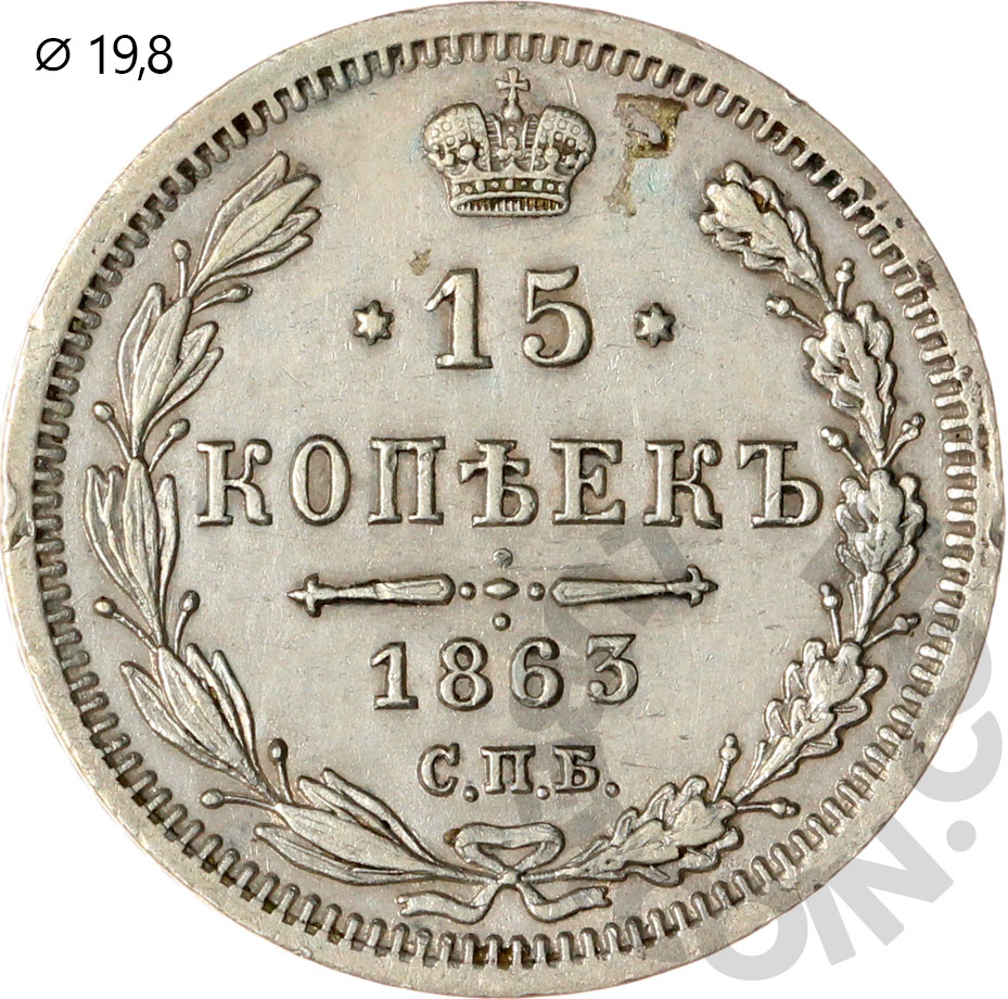 Российская Империя 15 копеек 1863 С.П.Б. АБ (00046948)
