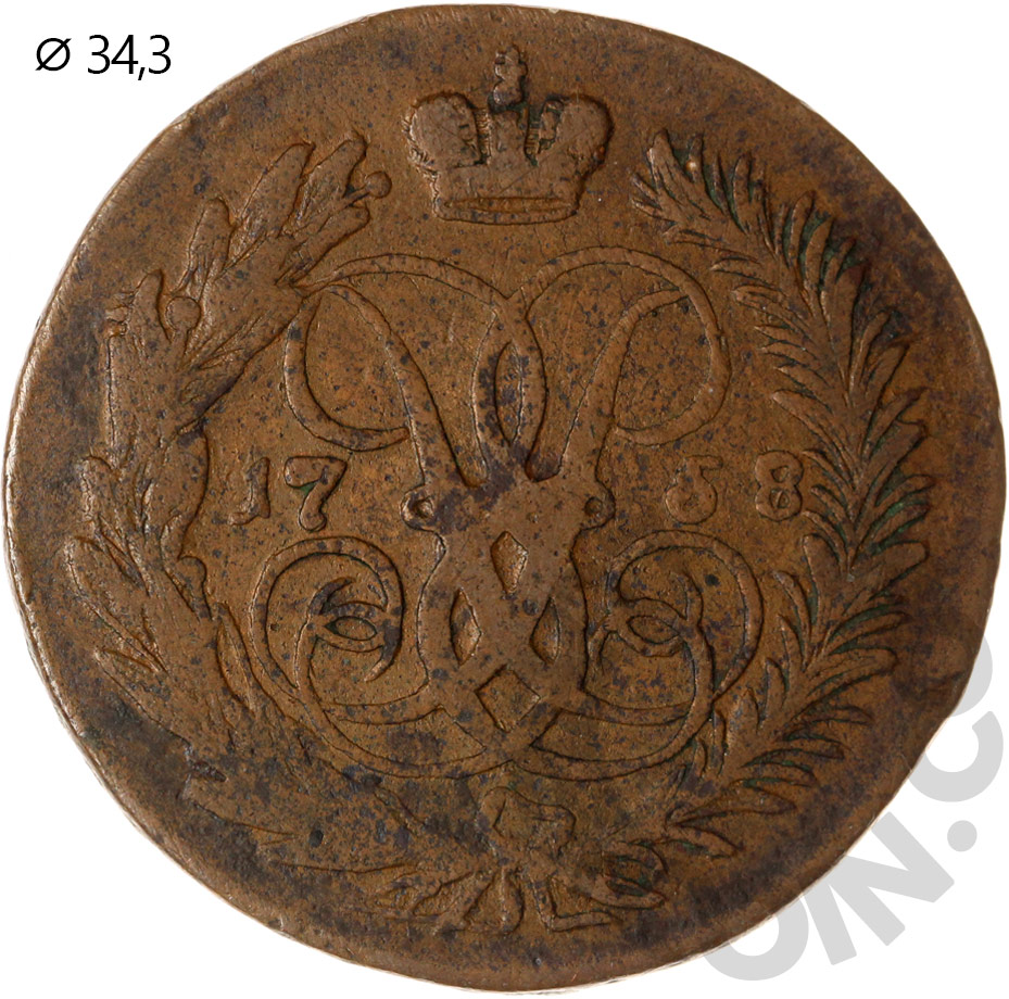 Российская Империя 2 копейки 1758 Гурт сетка (291016040)