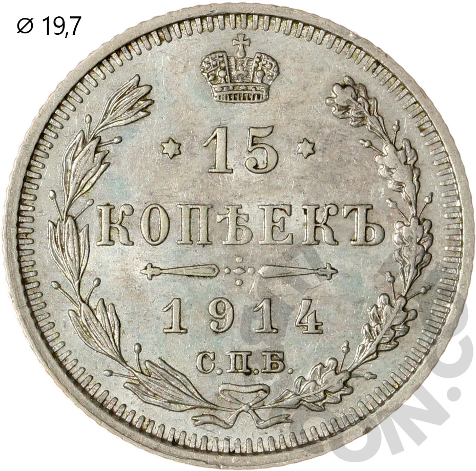 Российская Империя 15 копеек 1914 С.П.Б. ВС (00038847)