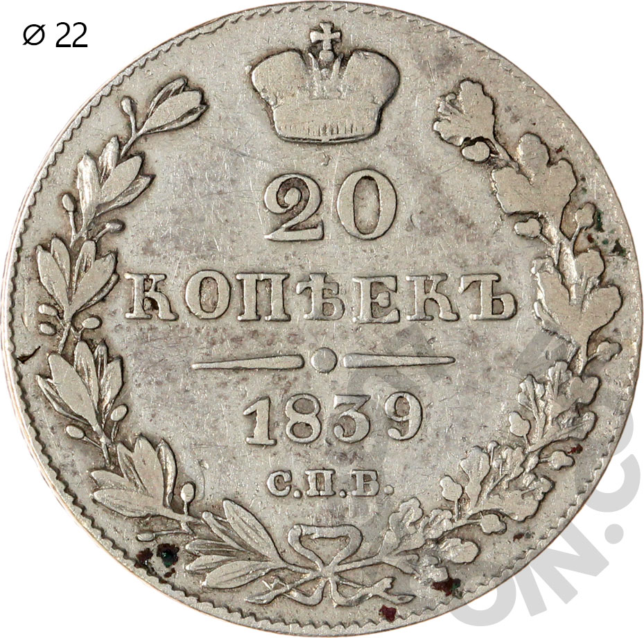 Российская Империя 20 копеек 1839 С.П.Б. НГ Малый бант (00046943)