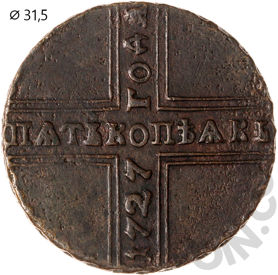Российская Империя 5 копеек 1727 КД (00016630)
