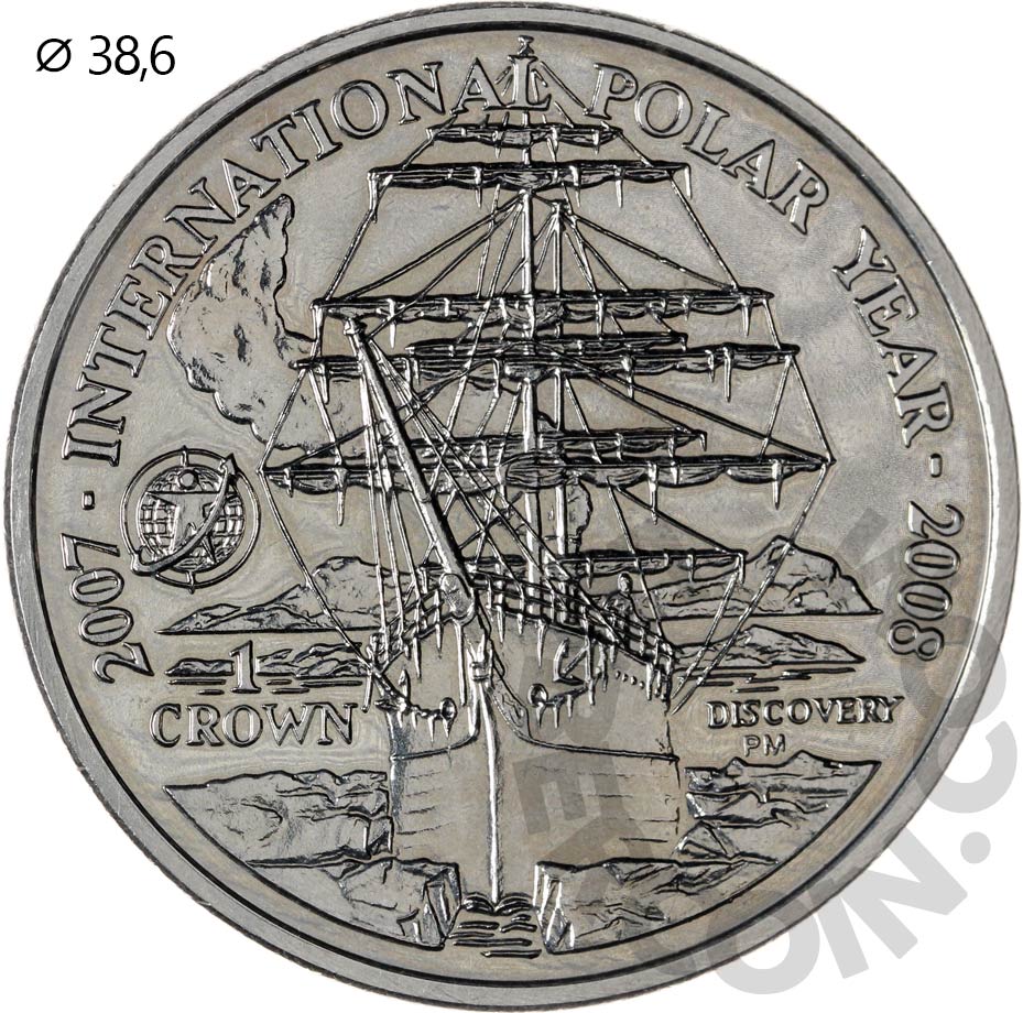 Фолклендские острова 1 крона 2007 Международный полярный год UNC (Патина)