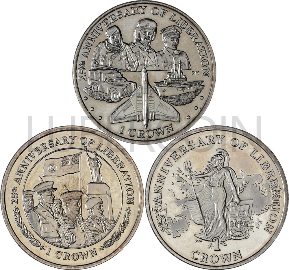 Фолклендские острова 1 крона 2007 Освобождение от Аргентины. 25 лет со дня события (3 монеты)