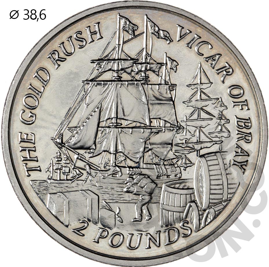 Фолклендские острова 2 фунта 2000 Золотая лихорадка. Викарий из Брэя UNC