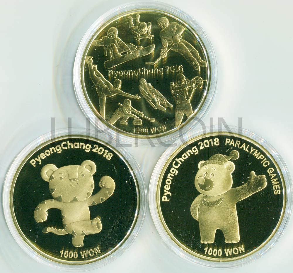 Южная Корея 1000 вон 2016—2017 Зимние Олимпийские и Паралимпийские игры 2018 в Пхёнчхане (3 монеты)