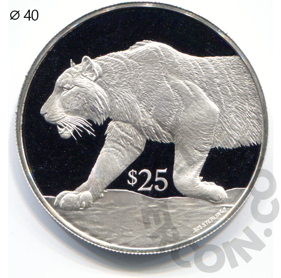 Британские Виргинские острова 25 долларов 1993 Вымирающие виды — Тигр (00047187)