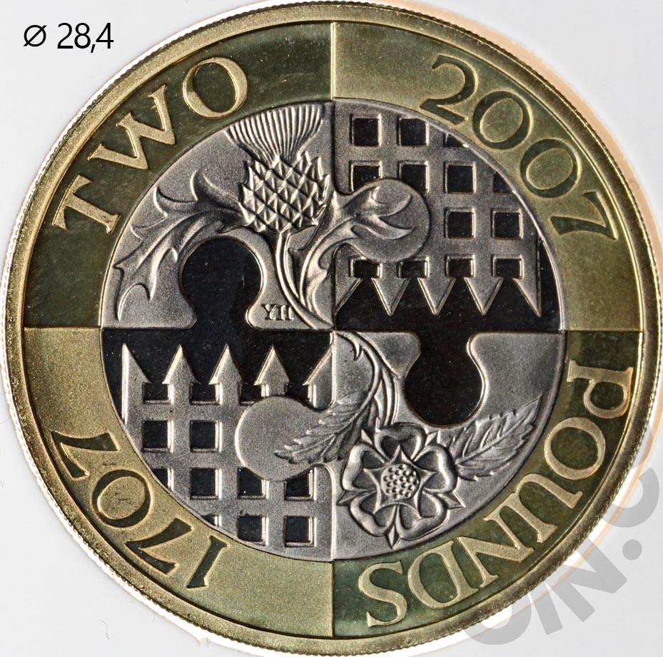 Великобритания 2 фунта 2007 Союз Англии и Шотландии. 300 лет со дня заключения PROOF