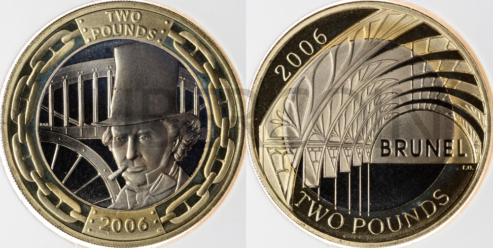 Великобритания 2 фунта 2006 Изамбард Кингдом Брунель. 200 лет со дня рождения (2 монеты) PROOF