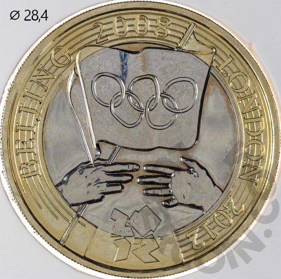 Великобритания 2 фунта 2008 Летние Олимпийские игры 2012 в Лондоне. Передача флага BU