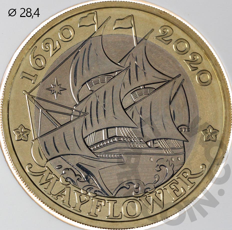 Великобритания 2 фунта 2020 Парусник «Мэйфлауэр» BU (Патина)