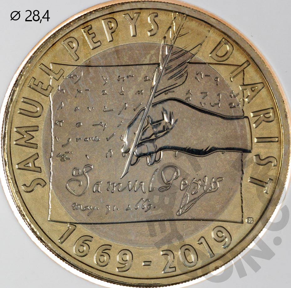 Великобритания 2 фунта 2019 Сэмюэл Пипс BU