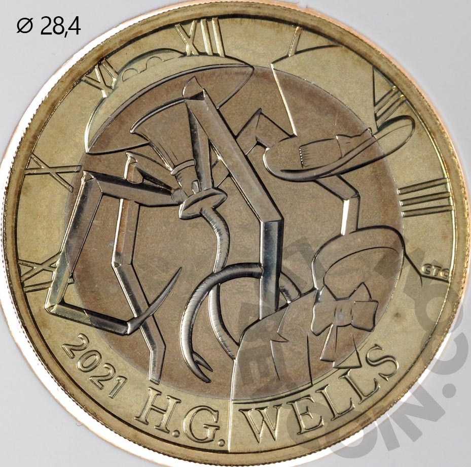 Великобритания 2 фунта 2021 Герберт Джордж Уэллс BU (Патина)