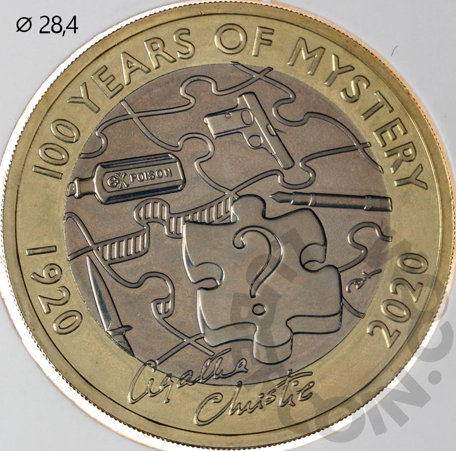 Великобритания 2 фунта 2020 Агата Кристи BU (Патина)