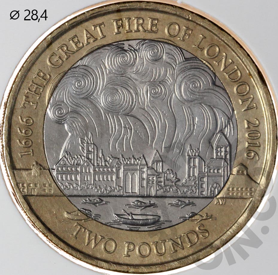 Великобритания 2 фунта 2016 Великий лондонский пожар. 350 лет со дня события (00047583)